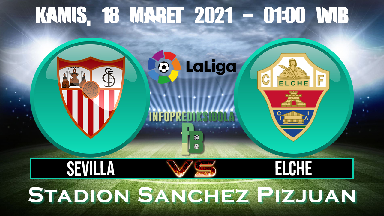 Situs infoprediksibola.com akan memberikan Prediksi Sevilla vs Elche pada tanggal 18 Maret 2021. Pertandingan lanjutan Liga Spanyol pekan ke 27 musim 2020/21, nantinya akan berlangsung pukul 01 : 00 WIB di Stadion Sanchez Pizjuan, dimana Sevilla yang akan bertindak sebagai tuan rumah. Untuk itu, langsung saja disimak informasi tentang Prediksi Skor Sevilla vs Elche yang sudah kami rangkum seperti di bawah.